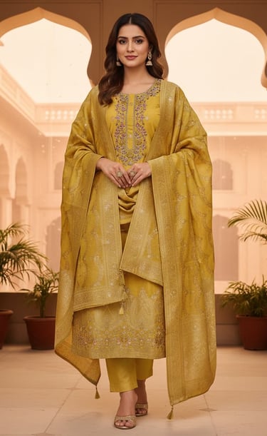 Our salwar suit collection blends traditional silhouettes with contemporary cuts, ideal for festive occasions, office wear, or casual chic days.